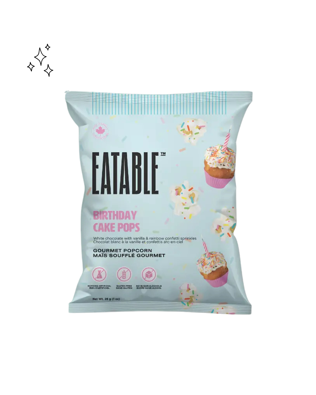 Celebrate every bite with Birthday Cake Pops Gourmet Popcorn Mini Bags from our friends at Eatable Popcorn.